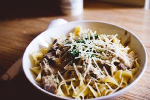 採用日曬手工麵條, 美國進口乳香起司,加以本店獨特醬汁,香...